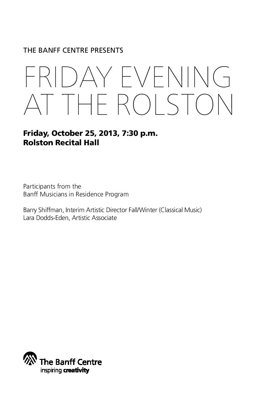2013: Banff Centre Fall Music Residency - Friday Evenings at the Rolston Programmes Lara Dodds-Eden1 December 2013Comment Facebook0 Twitter LinkedIn0 Reddit Tumblr 0 Likes